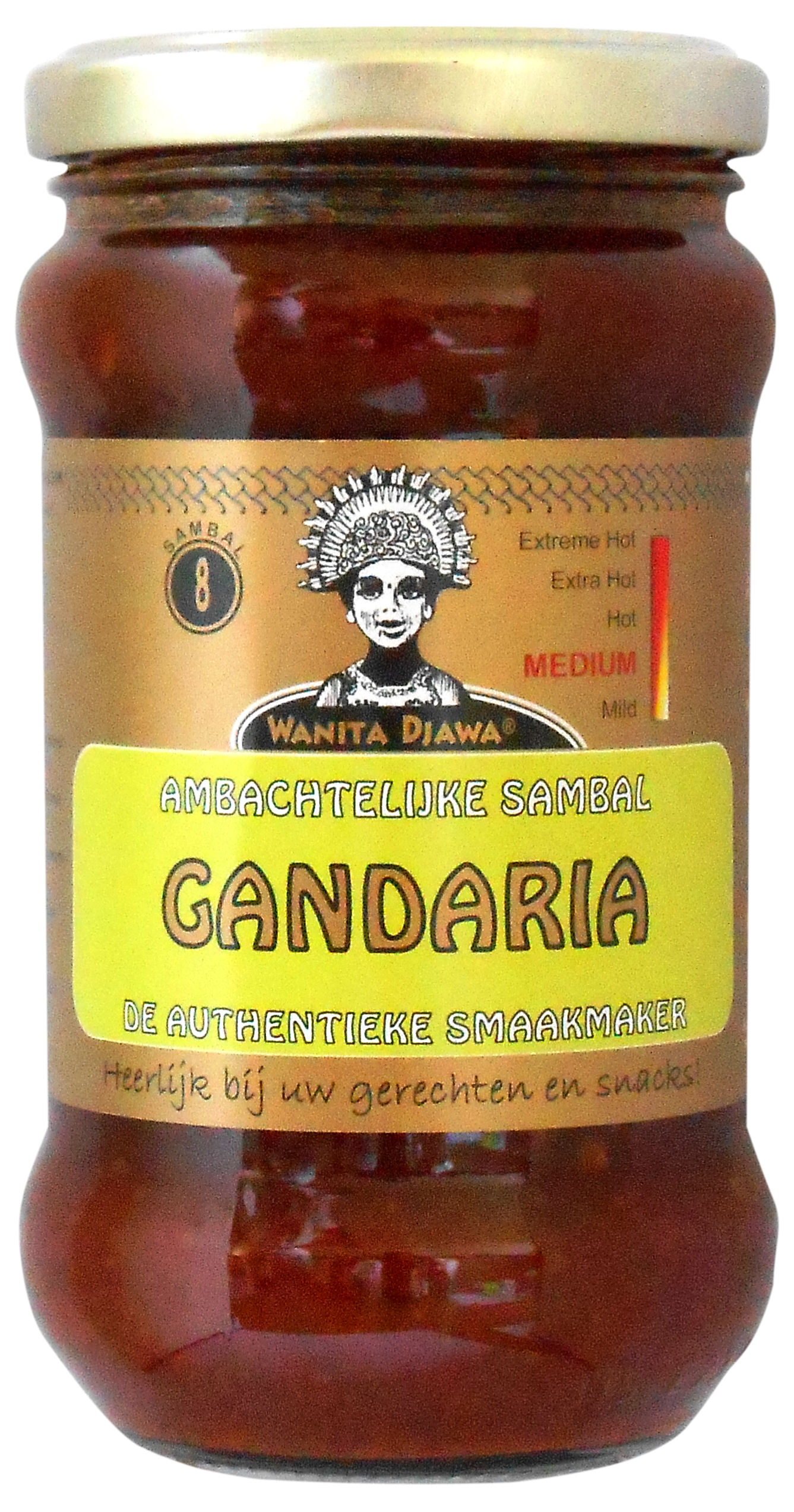 Ontdek de frisse, tropische kant van sambal met Wanitadjawa Gandaria Sambal. Deze bijzondere sambal combineert de pittigheid van rode pepers met de lichtzure, fruitige smaak van gandaria – een tropische pruim uit de Indonesische keuken. Uien, knoflook en garnalenpasta geven de saus diepte, terwijl de friszure toon het geheel verfrissend maakt. Perfect bij rijst, vis of om gerechten net dat beetje extra te geven.